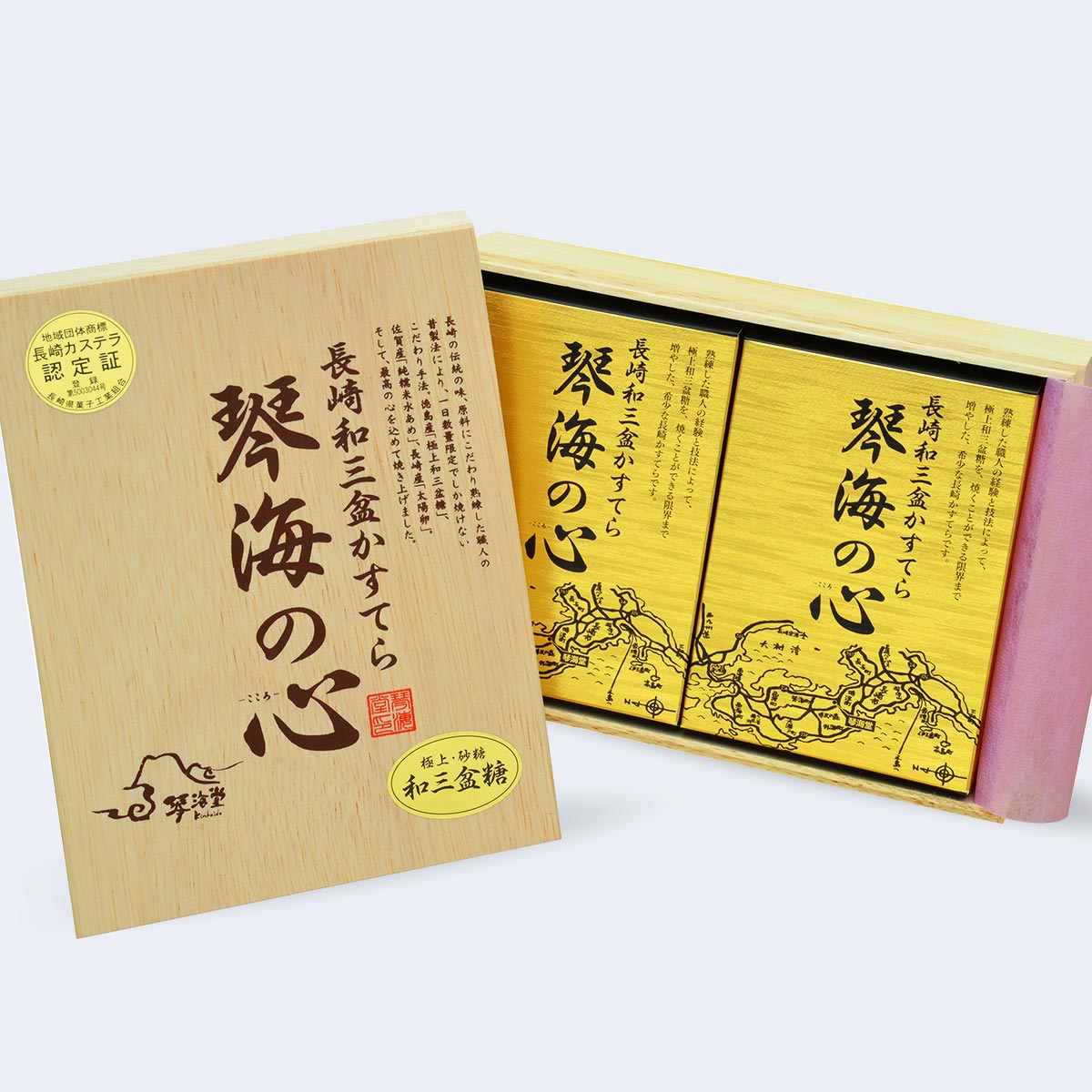 滑らかで口触りが良く、卵の風味豊かな琴海堂のカステラは、一度食べるとその美味しさにリピートされる方も多数。お茶やコーヒー、紅茶にもぴったりで、至福の時間をお楽しみいただけます。