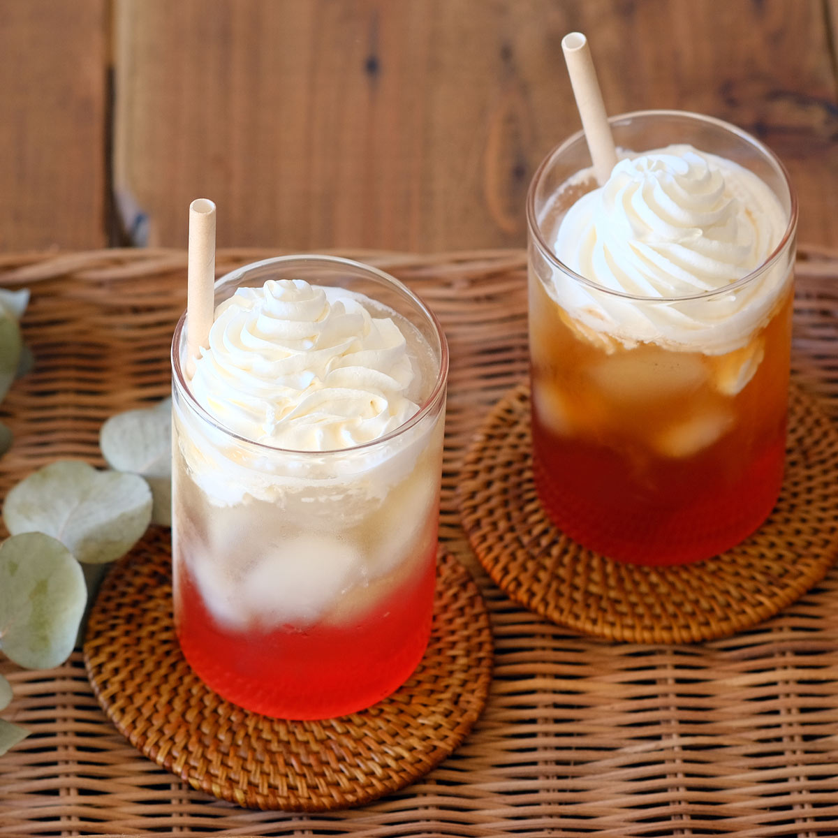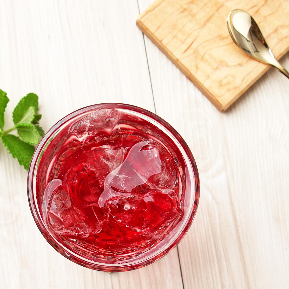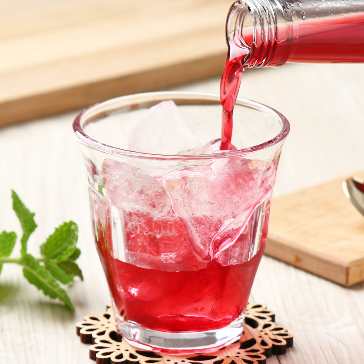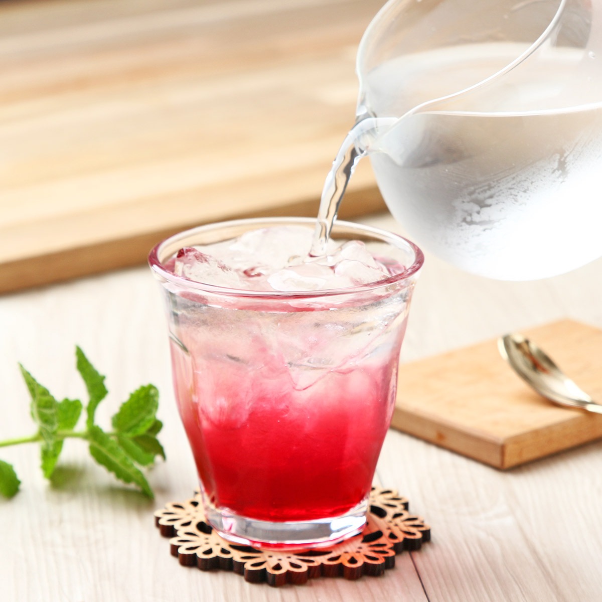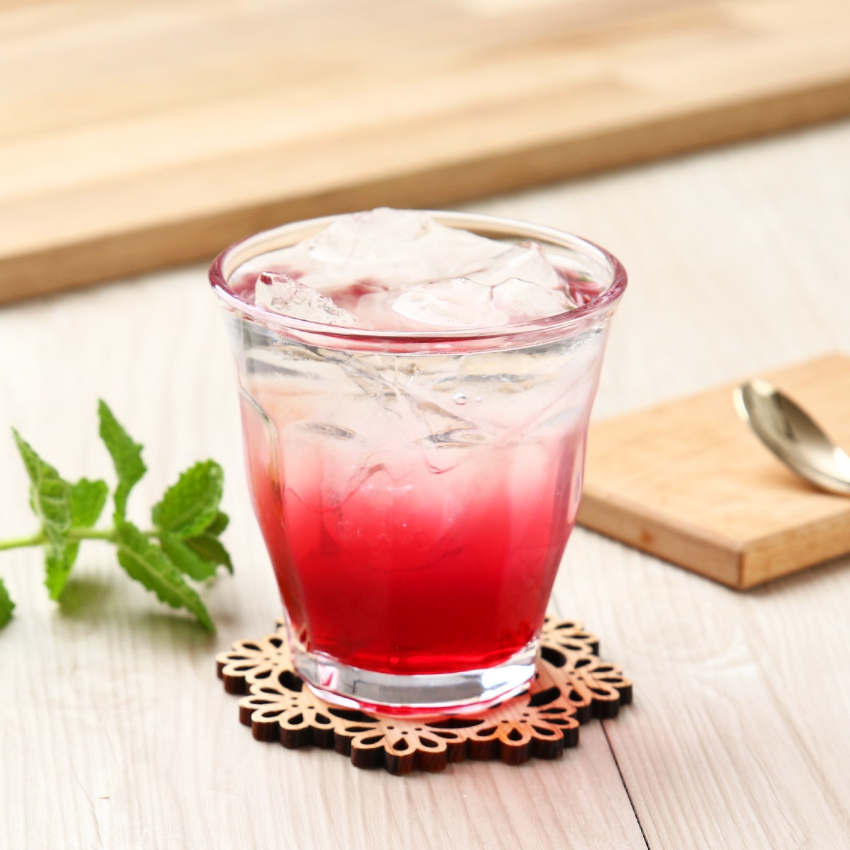 地熱で引き出した色・香り・風味のあるビネガーで作る、梅と紫蘇のフルーツビネガーティー。