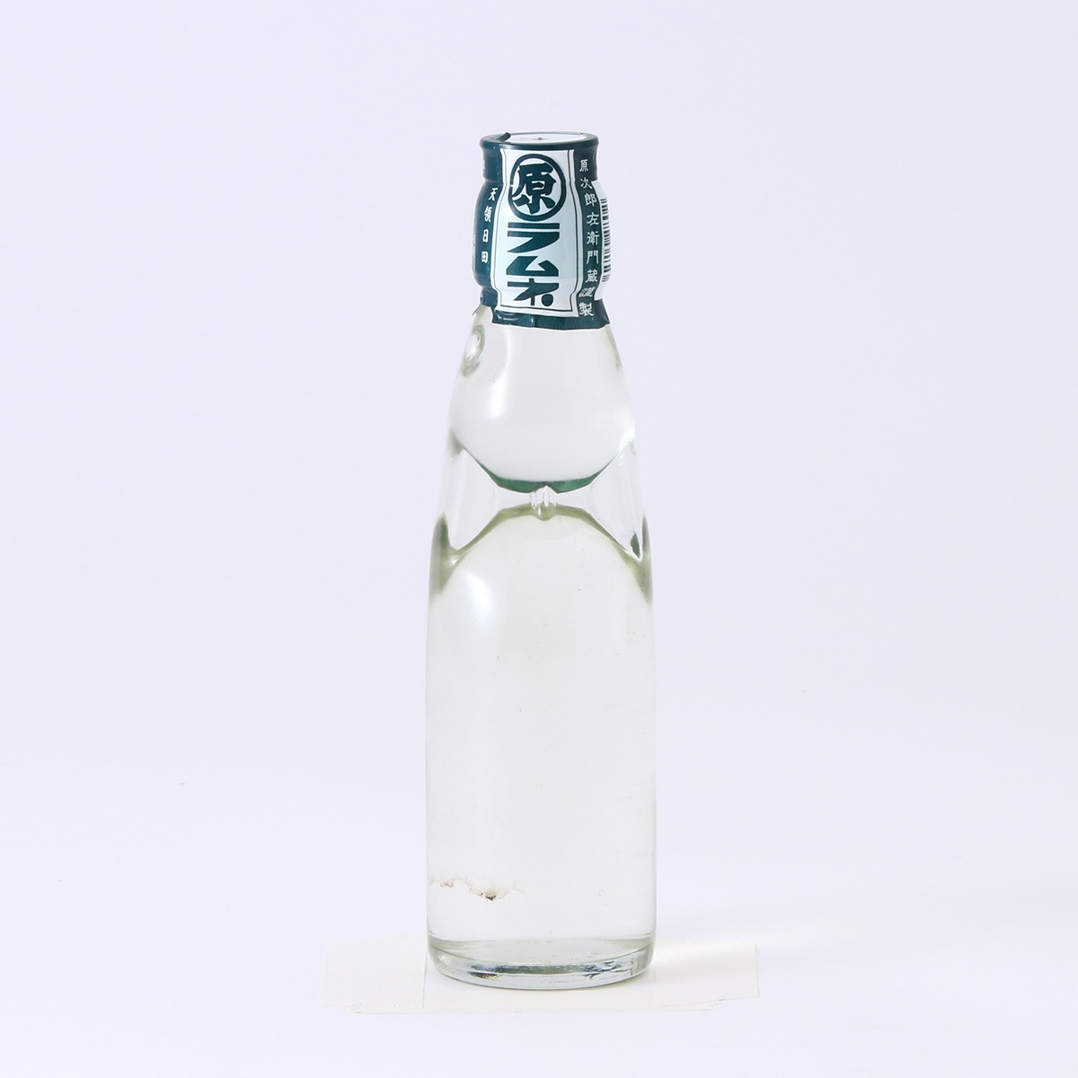 伝統的なビー玉式ボトルに入ったラムネは、手に馴染む飲みきりサイズで、シュワッと爽快な炭酸感を手軽に楽しめます。