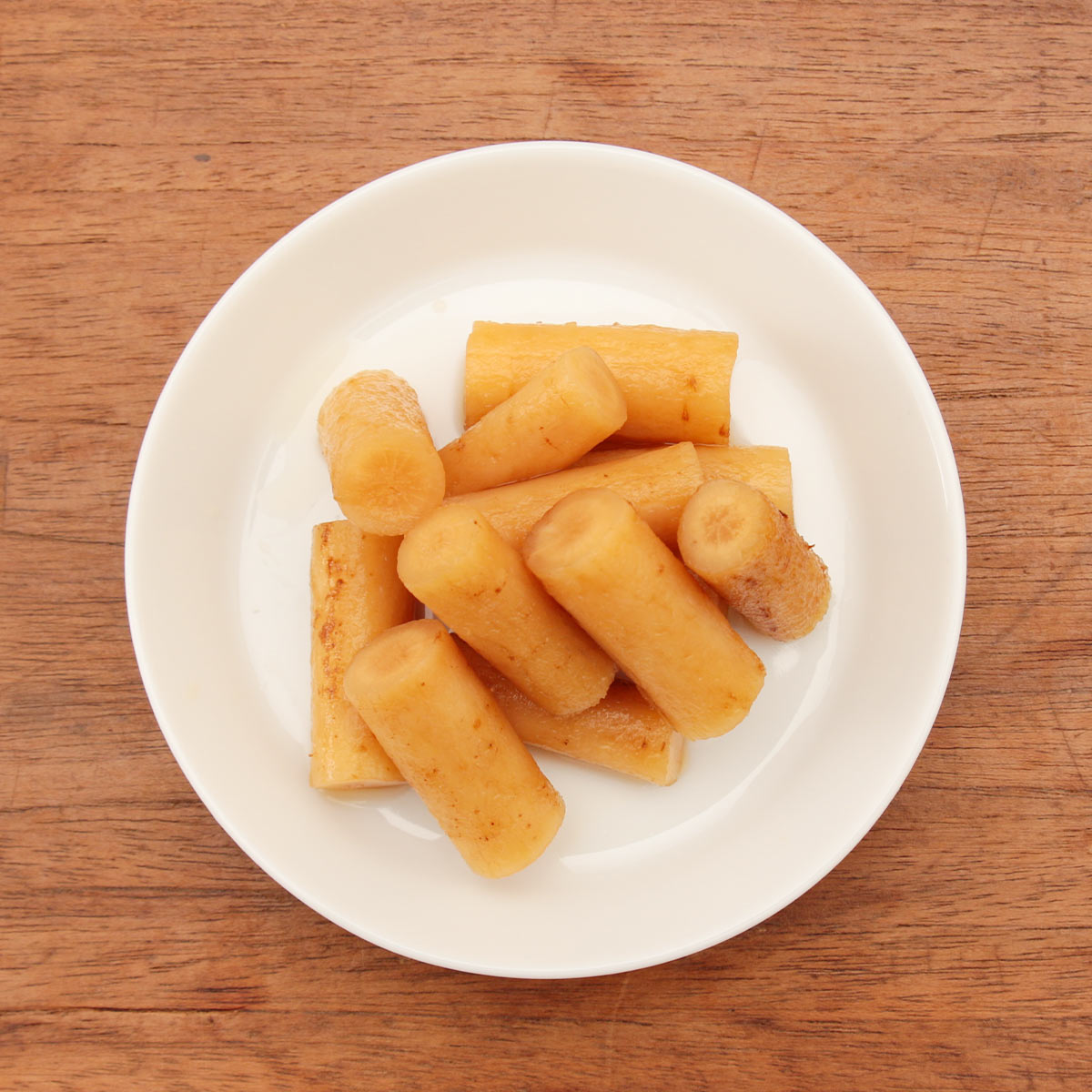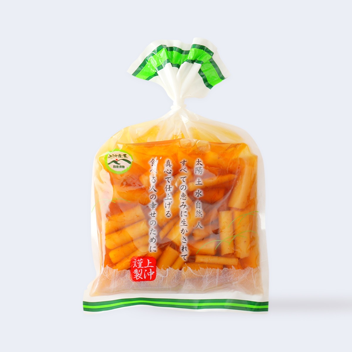 カリカリと適度な歯ごたえとごぼうの香りが豊かな醤油漬けです。