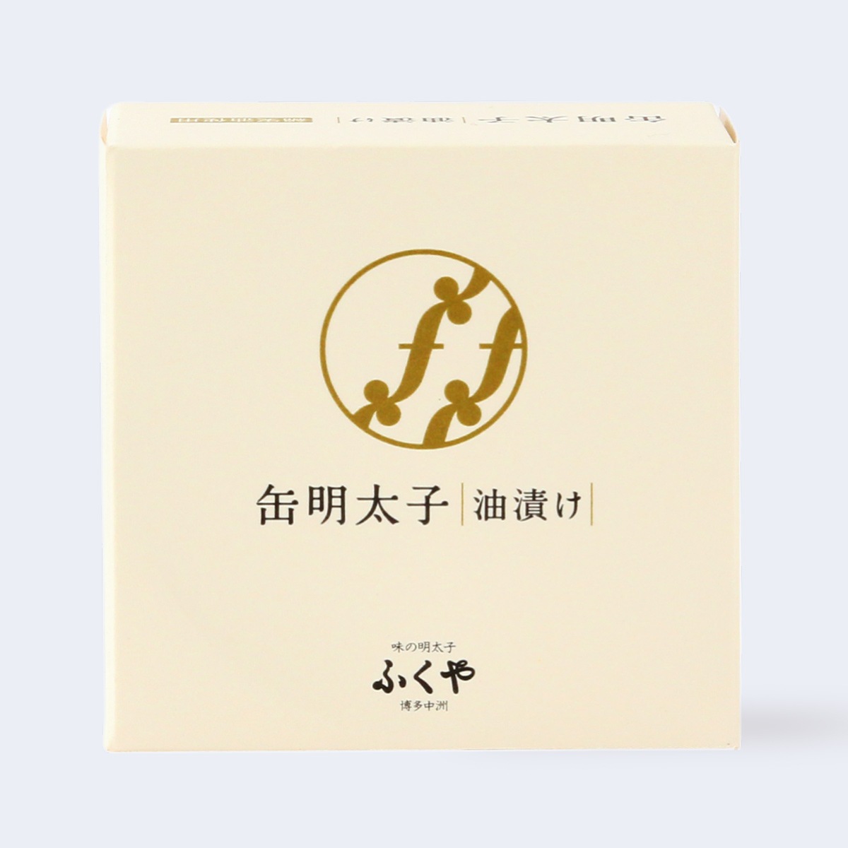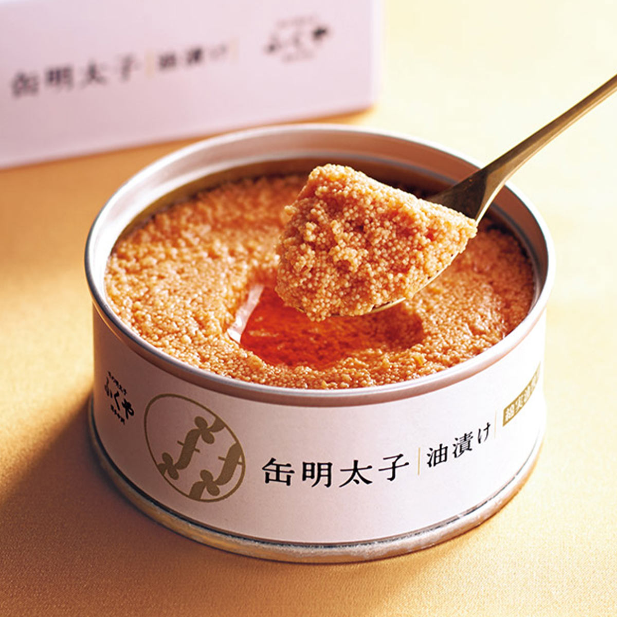 ふくやの味の明太子を粒にして、綿実油と合わせて缶詰にしました。