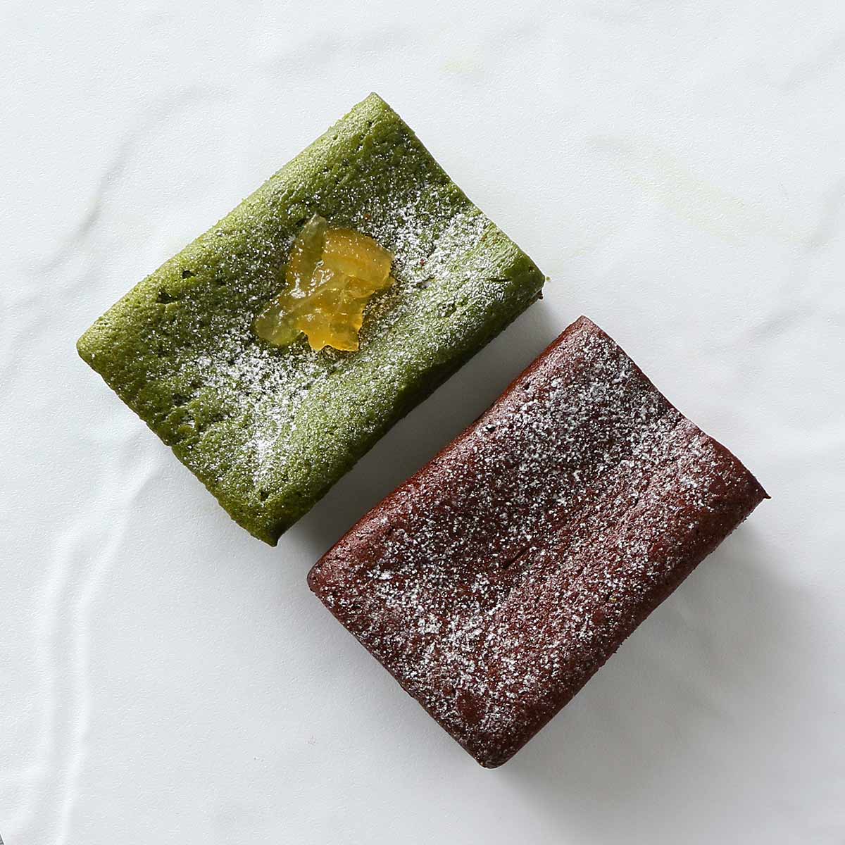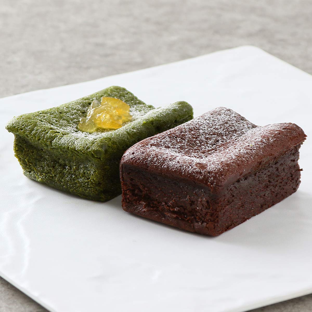 濃厚でしっとりとした美味しさのベーシックなガトーショコラと芳醇な風味を醸し出した究極の抹茶ショコラをお楽しみ下さい。